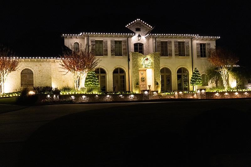 We provide all of the materials for your Christmas light install. All lights are commercial-grade LED C9 lights for the roof lines and ground lights. LED mini lights, garland, and wreaths are also available.